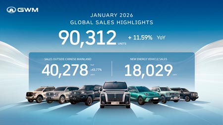 Концерн GWM продолжает демонстрировать устойчивую динамику развития, подтверждённую опубликованными результатами за 2025 год. По предварительным данным, операционная выручка компании увеличилась на 10,19% и достигла нового исторического максимума. Положительный тренд сохранился и в начале 2026 года: в январе продажи составили 90 312 автомобилей, что на 11,59% больше аналогичного периода прошлого года, а зарубежные продажи выросли на 43,77%, достигнув 40 278 единиц.