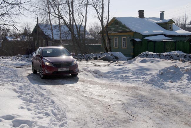 В Белом Городке решено на практике применить модный ныне якобы финский способ «трамбования» снега вместо посыпания дорог солью. В результате на дороге лежал примерно 20-сантиметровый слой то ли льда, то ли снега, а переезды через подземные теплотрассы для нашей Киа Рио были сущим мучением, плюс, к нашей зимней резине очень хотелось срочно приделать шипы.