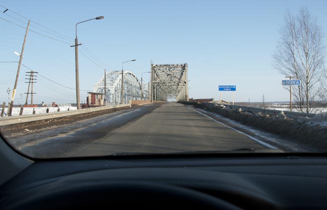 Дорога тем временем все ухудшалась, а деревни и поселки производили все более удручающее впечатление. Страшно подумать, что сделали с русской глубинкой 20 лет новой России. Наверное, после войны и то было лучше. Но природа радовала глаз: солнце всячески старалось развеять гнетущие мысли, появлявшиеся после проезда очередной деревни. Очень часто встречаются разнообразные памятники Великой Отечественной войны, но из-за глубокого снега к ним было не подобраться.