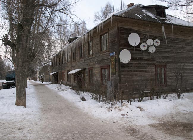 Единственная отдушина - это спутниковое телевидение. Каждый домик увешан гроздьями спутниковых тарелок. Это и телевизор, и интернет. А сами домики помнят еще военные времена и пленных немцев, строивших их везде по стране....