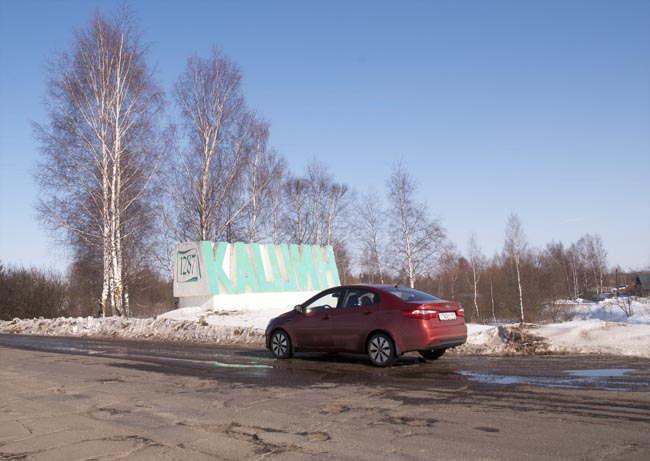 Пока то да сё, пока разобрались со встроенной навигацией нашей Киа Рио, не заметили, как проехали Кимры. Вот это номер! Так мы пролетим и весь маршрут, даже не заметив его. Пора немного сбросить темп, несмотря на то, что урчащий мотор под капотом так и манит нажать педаль газа.
