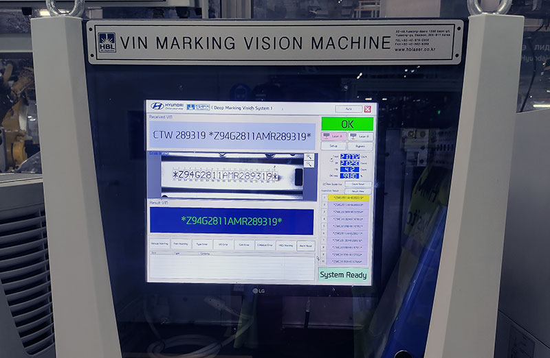 Перед главным конвейером на раму наносится VIN-номер будущего автомобиля. С этого момента начинается отсчет времени нахождения кузова на конвейере.