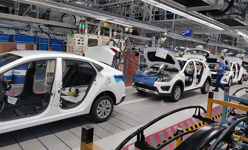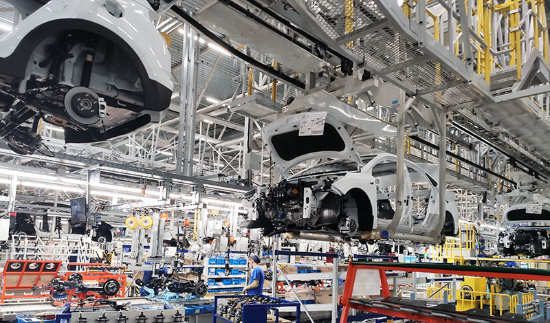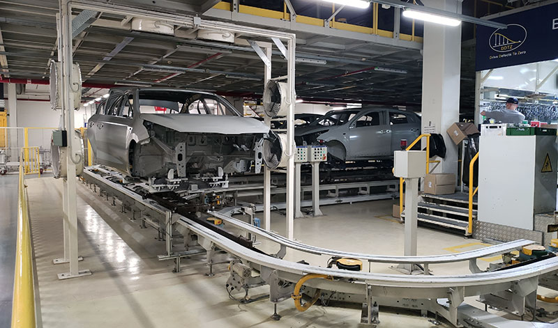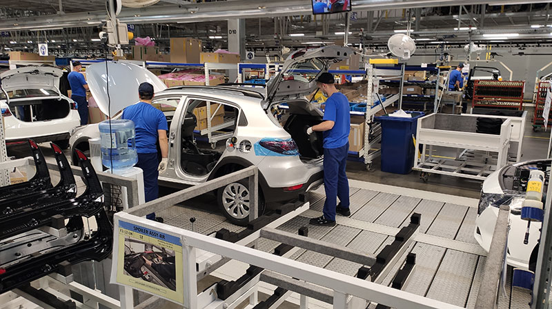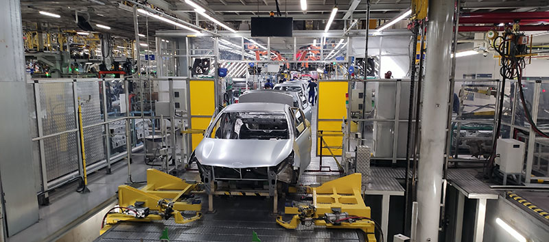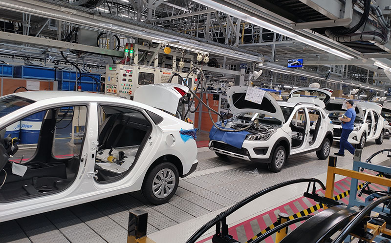 Самый большой корпус завода занят основным сборочным конвейером, где кузова обрастают деталями.