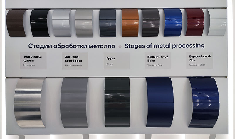Окраска также роботизирована, что обеспечивает максимально возможные на сегодняшний день равномерность и стабильность нанесения краски. На кузов наносится слой базовой краски, а затем слой лака.