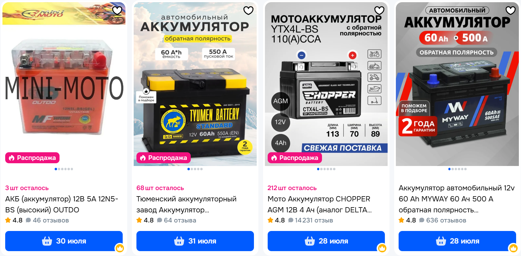 Подобрать надежный аккумулятор для автомобиля можно на Ozon — здесь представлен широкий выбор моделей для разных автомобилей и климатических условий.