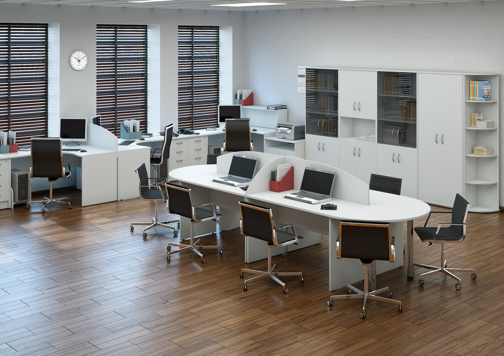 - Оригинальный эргономичный дизайн. Мебель для офиса Riva побуждает работать и повышает работоспособность. И это не просто слова. Эргономика каждого элемента обстановки продумана до деталей. Обтекаемая, современная, стильная, удобная — вам не захочется покидать пределы рабочего кабинета. Если это стол, он компактный, но при этом вместительный. Если это тумба, она не мешает передвижению по офису и идеально сочетается с письменным столом.