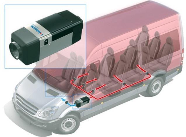 Работает система от топлива и снабжает теплым, горячим воздухом помещения салона автомобиля. Эффективность отопления идет за счет увеличенной площади теплообменника отопителя. Топливо расходуется достаточно экономно по сравнению с другими обогревателями. Поэтому воздушные отопители с уверенность можно назвать экономичными. Благодаря экономичности расхода топлива, они отлично подходят для того чтобы водители фургонов и больших автомобилей прогревали им машину во время длительных стоянок. Воздух система может забирать не только с салона, но и извне. Нагрев воздушного отопителя происходит плавно и постепенно. Работает бесшумно, не мешая водителю.