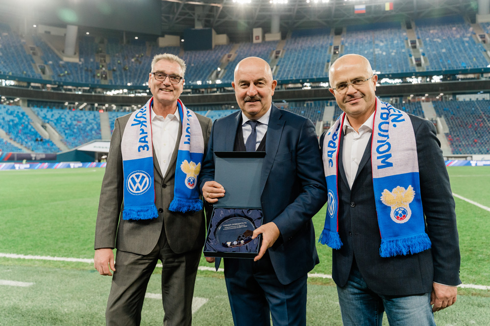Volkswagen наградил Алексея Ионова в номинации «Двигатель команды» как самого быстрого игрока сборной России в рамках матча квалификации ЕВРО-2020 между сборными России и Бельгии. Главный тренер сборной России Станислав Черчесов получил награду в номинации «Тренер-победитель» за выход команды в финальную часть ЕВРО-2020.