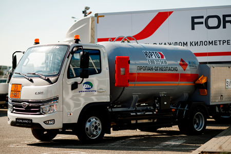 В России представлен новый газовоз на базе шасси FORLAND 3 — первый сертифицированный коммерческий автомобиль категории B с цистерной объёмом 3 500 литров для транспортировки сжиженного газа.