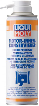 ОСОБЕННОСТИ Внутренний консервант двигателя LIQUI MOLY Motor Innerkonservierer создает нет долговременную защиту от ржавчины и коррозии. Средство обладает высокойнадежностью использования, удобством применения. Предназначено для всех типов двигателей. Используется для надежной долговременной консервации всех типов 2- и 4-тактных двигателей, таких как лодочные двигатели, газонокосилки, мотоциклы, снегоуборочная техника. ОСОБЕННОСТИ ПРИМЕНЕНИЯ В зависимости от типа двигателя различается способ применения консерванта двигателя LIQUI MOLY Motor Innerkonservierer. Для 2-тактных двигателей: снимают воздушный фильтр и распыляют средство в карбюратор работающего на малых оборотах двигателя в течение 10-20 сек. Двигатель глушат, выворачивают свечи и распыляют средство в каждый цилиндр в течение 5 сек, по возможности проворачивая рукой двигатель. Вкручивают свечи на место. Для 4-тактных двигателей: выворачивают свечи зажигания (форсунки, свечи накаливания) и в течение 5-10 сек распыляют средство в каждый цилиндр, проворачивая двигатель стартером или с помощью рычага. Затем свечи, форсунки и свечи накаливания устанавливают на место. LIQUI MOLY Motor Innerkonservierer - внутренний консервант двигателя, артикул 1420