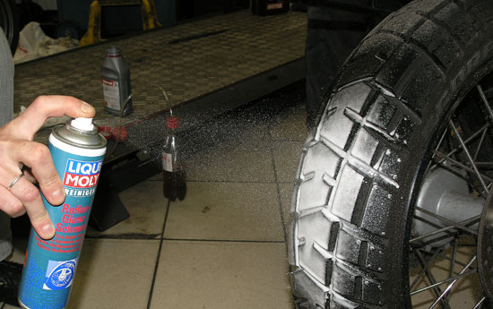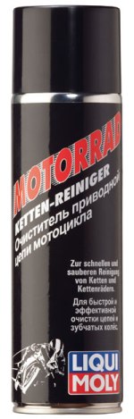 - Промыть цепь очистителем LIQUI MOLY Motorrad Ketten-Reiniger, артикул 7625 и смазать ее подходящей под класс мотоцикла цепной смазкой, например: LIQUI MOLY RacingKettensprayweiss, артикул 1591.