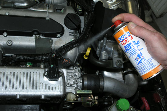 - Для предотвращения коррозии разъемов электрооборудования и клемм аккумулятора нужно доступные разъемы рассоединить и обработать спреем для электропроводки LIQUI MOLY Electronic-Spray (артикул 3110), после чего собрать обратно.