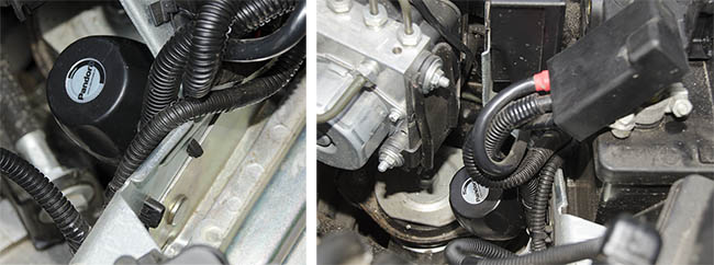 Сирену сигнализации легко и удобно можно установить на площадке аккумулятора с задней стороны вблизи блока ABS – здесь не приходится портить кузов, используя саморезы. Благодаря штатной шпильке с гайкой сирена здесь удобно крепится. Длина проводов при этом минимальна, а в данном месте сирена не бросается в глаза