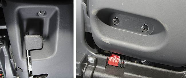 Для демонтажа подрулевой панели LADA Priora NEW необходимо открутить три пластиковых винтовых фиксатора с «барашками». Они расположены в нижней части панели. Вверху расположены три клипсы. Снимать панель с клипс удобнее с помощью пластиковой лопатки. Сдергивая панель с фиксаторов на себя, необходимо соблюдать осторожность, поскольку пластик хрупкий и в процессе разборки может треснуть.