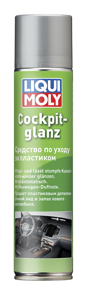 Если необходимо обновить пластмассовые детали салона, лучше использовать средство для ухода за пластиком Liqui Moly Cockpit Glanz. Средство-аэрозоль используется для обработки пластиковых деталей, приборных панелей и торпедо. Его можно применять и для устранения скрипа сопряженных пластиковых деталей, а также смазки заедающих ремней безопасности. Эффективность препарата заложена в его составе. Средство размягчает загрязнения и затем скрупулезно очищает. При этом защитные компоненты в составе Liqui Moly Cockpit Glanz создают тонкое антистатическое покрытие, препятствующее дальнейшему загрязнению, а силиконы восстанавливают текстуру и насыщают цветом потускневшие элементы.