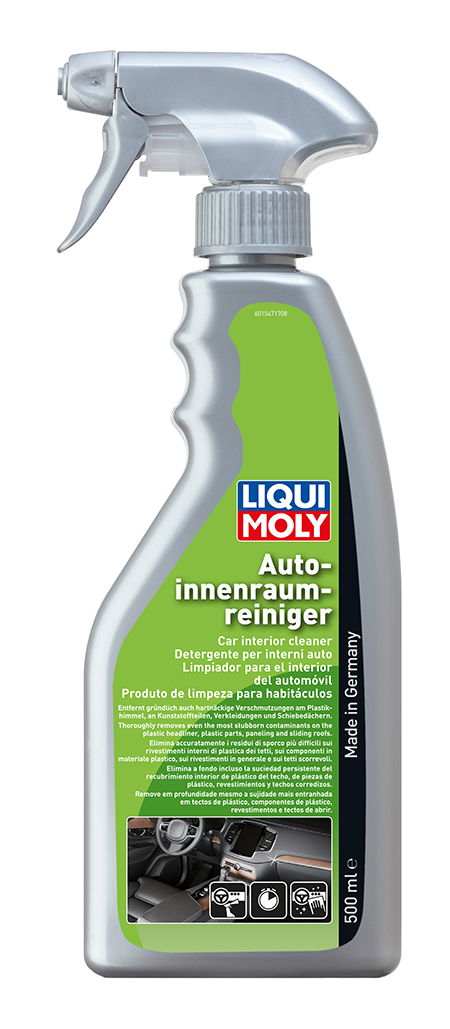 Особенностью Liqui Moly Auto-Innenraum-Reiniger является то, что он содержит поверхностно-активные вещества, которые позволяют бережно и качественно растворить соединения загрязнений и очистить детали интерьера автомобиля. Распыляемая суспензия нейтральна к деталям и материалам интерьера.