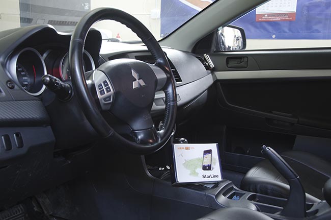 Установка GPS-маяка StarLIne M15 будет производиться на автомобиль Mitsubishi Lancer под панель приборов.