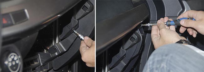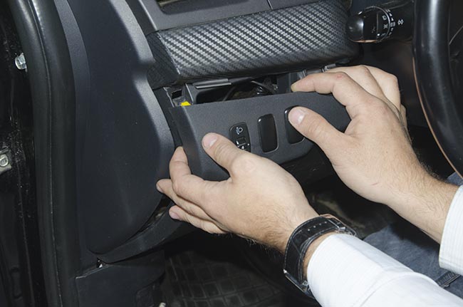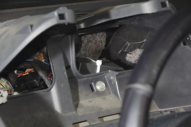 Теперь нужно выкрутить три винта, для того, чтобы снять собственно панель приборов. Это место удобно для установки маяка тем, что тут есть свободное место для установки маяка и доступ к электропроводке автомобиля.