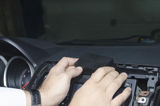 Устанавливаем маяк на выбранное место - в данном случае за магнитолой. Теперь установка маяка StarLIne M15 завершена. Осталось собрать панель в обратной последовательности и работа окончена.