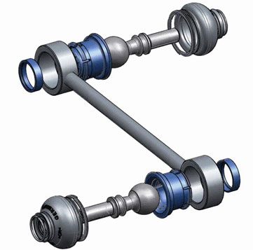 В новых стойках Meyle-HD значительно упрощен процесс установки вкладыша подшипника скольжения: вкладыш, выполненный из полимерного материала, устанавливается в стальной корпус подшипника с помощью технологии «Clip-on» - «защелка», после чего в подшипник устанавливается стопорное кольцо. Данная технология позволила уйти от используемого ранее способа крепления пластикового вкладыша - «приваривания» его с помощью ультразвука. Таким образом, на вкладыше больше нет никаких «наплывов» от сварки. Также подверглась модернизации и конструкция шарового пальца.