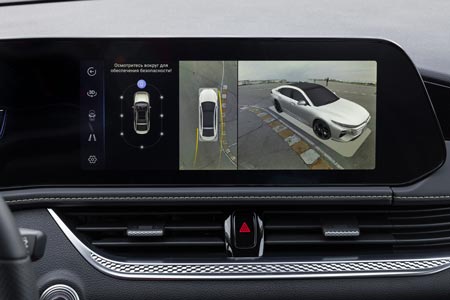 Для маневрирования в ограниченном пространстве используется система кругового обзора 540° с функцией «прозрачного шасси». Она позволяет видеть зоны, недоступные через зеркала — в том числе пространство перед колесами.