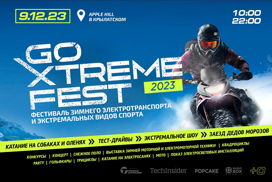 9 декабря трассы и открытые площадки APPLE HILL в Крылатском соберут более 1000 участников со всей России. Первый в своем роде фестиваль зимнего электротранспорта и экстремальных видов спорта пройдет с единственной целью: объединить тех, кто желает показать неограниченные возможности электротранспорта, получает удовольствие от зимнего катания и развивает культуру зимних экстремальных видов спорта.