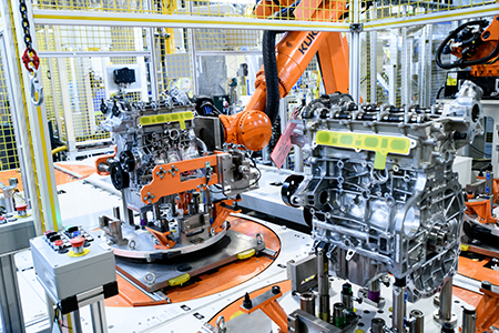 задействовано 5 промышленных манипуляторов, выполняющих с высокой точностью и скоростью сложные технологические операции. Все собранные двигатели проходят «горячий тест»: на стенде производится первый запуск, имитирующий работу в реальных условиях эксплуатации. Результаты испытания сравниваются с эталонными показателями. Далее двигатель отправляется на склад готовой продукции, затем поступает в цех сборки завода HAVAL для установки на автомобиль.