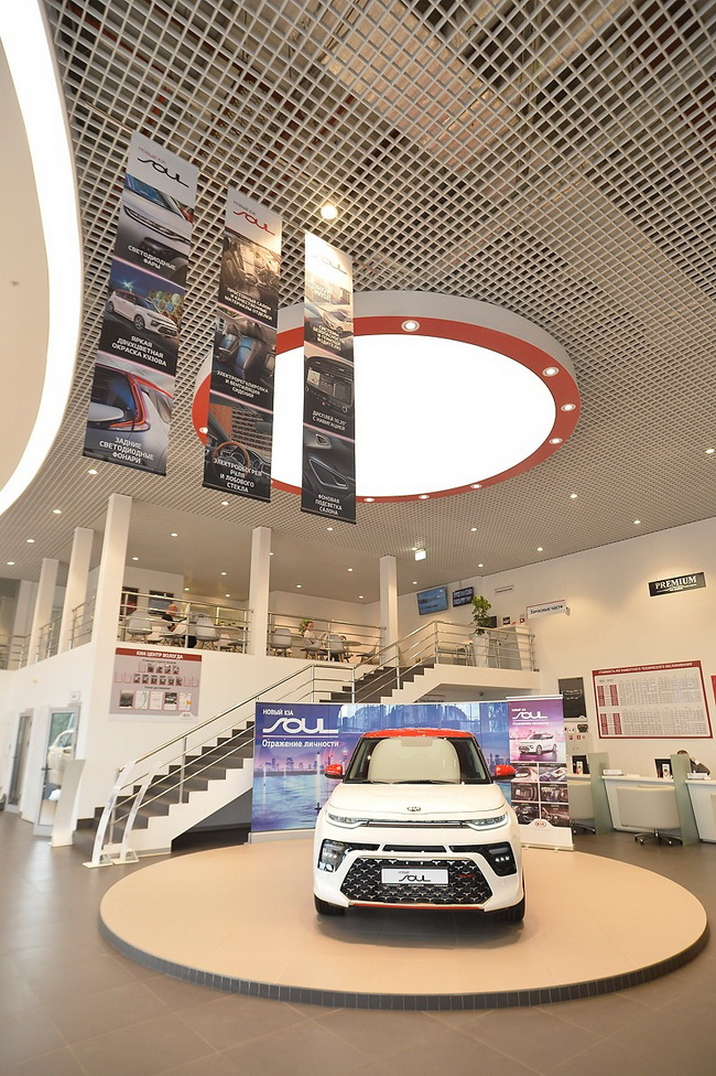 Новый дилерский центр общей площадью 2 191 кв. м. оформлен в соответствии со стандартами KIA «Красный куб» (Red Cube). Просторный шоу-рум площадью более 797 кв. м. предлагает современное и удобное пространство для клиентов с целью оставить положительные впечатления от посещения дилерского центра.