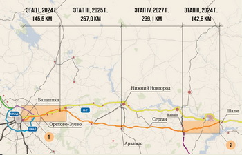Правительство согласовало поэтапную реализацию проекта строительства новой скоростной автомобильной трассы I технической категории, которая соединит Москву и Казань. С 2020 по 2024 год предусмотрено строительство первого участка, от Москвы до Владимира (145,5 км, в том числе обходы Балашихи и Ногинска), и второго участка – от Канаша до Шали, Республика Татарстан (142,8 км). Ввод в эксплуатацию этих этапов разгрузит дорожную обстановку на подъездах к Москве и Казани. Об этом было объявлено на пресс-конференции в МИА «Россия Сегодня» с участием заместителя председателя правительства Российской Федерации Максима Акимова, первого заместителя министра транспорта Российской Федерации Иннокентия Алафинова, председателя правления Государственной компании «Автодор» Вячеслава Петушенко. В период с 2021 по 2025 год запланировано строительство дороги от Владимира до Арзамаса (267 км). Здесь трасса пройдёт недалеко от Мурома. А в 2022 году дорожники приступят к участку Арзамас – Канаш (239,1 км). Подготовка проектно-сметной документации по всем этапам будет идти одновременно. «Полную готовность всей новой трассы мы намерены обеспечить в 2027 году», – сказал заместитель председателя правительства РФ. Дорога получит номер М-12 в классификации федеральных автодорог, Минтранс выберет название для российской части дороги. Буквой «M» с учётным номером в России обозначаются автомобильные дороги федерального значения, соединяющие Москву со столицами иностранных государств и административными центрами регионов страны. Трасса Москва – Казань протяжённостью 794 км – один из ключевых участков международного транспортного маршрута «Европа – Западный Китай» (МТМ ЕЗК), реализуемого в рамках Комплексного плана модернизации и расширения магистральной инфраструктуры до 2024 года. Трасса объединит четыре крупнейшие агломерации – Московскую, Нижегородскую, Казанскую, Самарско-Тольяттинскую – и в два раза сократит время в пути между Москвой и Казанью.Об общем объеме финансирования строительства автотрассы Москва - Казань и обхода Тольятти журналистам рассказал заместитель министра транспорта РФ Иннокентий Алафинов: «730 миллиардов рублей – это строительство дороги Москва – Казань и строительство обхода города Тольятти», – сказал Иннокентий Алафинов. |