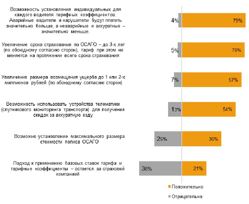 «Респонденты достаточно позитивно относятся к либерализации тарифов по ОСАГО. 53% согласны с нововведениями (учет индивидуальных особенностей вождения, скидки за аккуратную езду), каждый третий – относится нейтрально. На негативное отношение указали только 6% опрошенных водителей. Это очень хороший результат, с учетом того, тема установления справедливого тарифа была озвучена не так давно», - отмечает Светлана Поликанина, Руководитель департамента количественных исследований холдинга «Ромир».