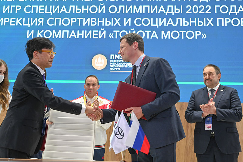 Торжественная церемония подписания Меморандума прошла в рамках Петербургского международного экономического форума. В ней приняли участие министр спорта Российской Федерации Олег Матыцин, премьер-министр Республики Татарстан Алексей Песошин, президент Специальной Олимпиады России Ольга Слуцкер, президент ООО «Тойота Мотор» господин Сюдзи Суга, глава АНО «Дирекция спортивных и социальных проектов» Максим Денисов и другие официальные лица.