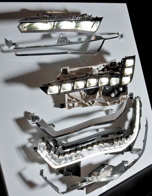 LED-технологии недешевы - одна фара это 44 светодиода дневного света и поворотников, 10 среднего радиуса действия и еще пара мощных четырехчиповых светодиодов дальнего света плюс встроенные вентиляторы охлаждения.