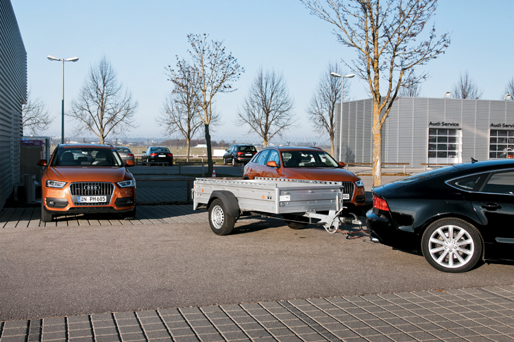 Audi A7 с прицепом? У нас подобное невозможно представить. В Европе такая картина пусть не норма, но вполне допустима. Так немцы показывали систему помощи при парковке с прицепом в действии.