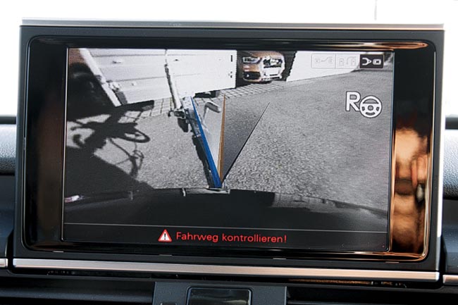 Работает Audi и над полностью автоматической системой парковки. Правда куда реалистичнее и любопытнее на сегодня выглядит ассистент автоматической парковки автомобиля с прицепом. С таким сервисом машина с прицепом будет рулить в ограниченном пространстве сама! Нужно лишь указать направление нужного курса с помощью шайбы основной коммуникационной установки MMI и виртуальной стрелки, а еще нажимать на тормоз и газ. Пережать педель газа можно больше не бояться. С включенным помощником автомобиль будет ехать не быстрее 8 км/ч при любой силе нажатия.