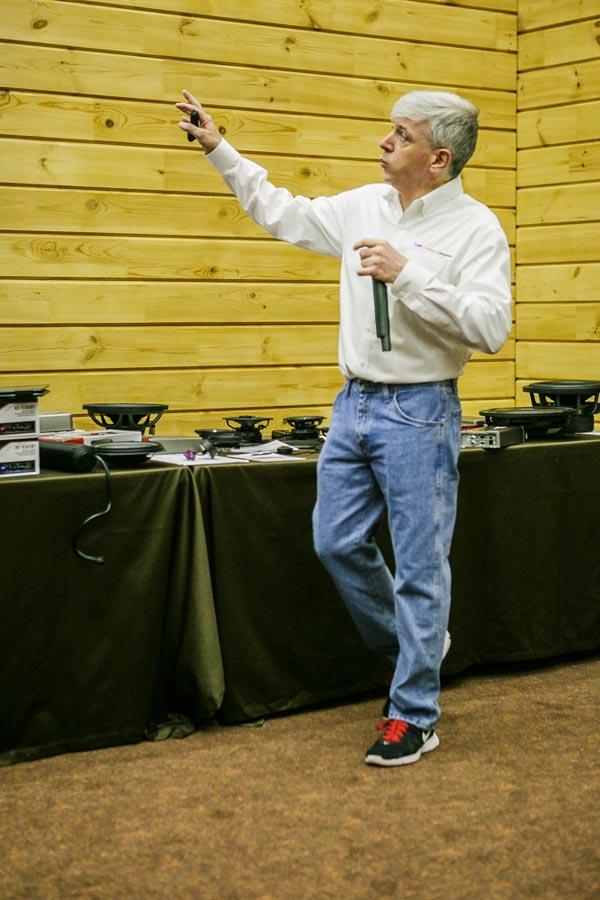 О новинках 2017 года рассказывал Borgardt Matthew Jogn, приехавший из Америки. Он сосредоточил свое выступление на новых линейках акустики Cadence Q, Cadence QR, а также Cadence QRS как лучшей среди моделей этого года. Отдельный блок выступления был посвящен сабвуферам. Начав с описания головок, докладчик перешел к соревновательным сабам Cadence Beast Master.