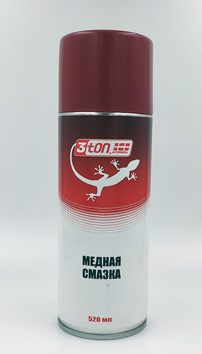 Состав «3ton медная смазка» российского производства из г. Пушкино в первом же рейтинге оказался на третьем с конца месте. Несмотря на большое пространство на этикетке производитель измельчил пояснительный надписи так что читать их без лупы стало невозможно, да и не все необходимые параметры указал. Но самый большой сюрприз состав преподнес когда мы стали напылять его на поверхность. Вместо место огненно красного медного цвета состав, коорый шел из баллончика оказался золотистый. Это указывает, на то, что вместо медного порошка в нем используется сплав меди, скорей всего латунь. Получается, что производитель напрямую вводит потребителя в заблуждение тогда как в составе написано четко – медный порошок.