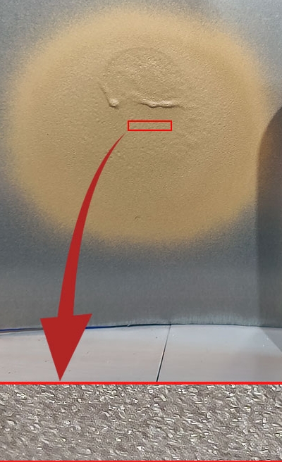 Как результат состав получил в рейтинге по равномерность нанесения на поверхность предпоследнее место и полностью провалил рейтинг по оценки эффективного объема баллона. Так как состав из него, так и не удалось извлечь. Микроскопические исследования показали, слипание частичек медного порошка.
