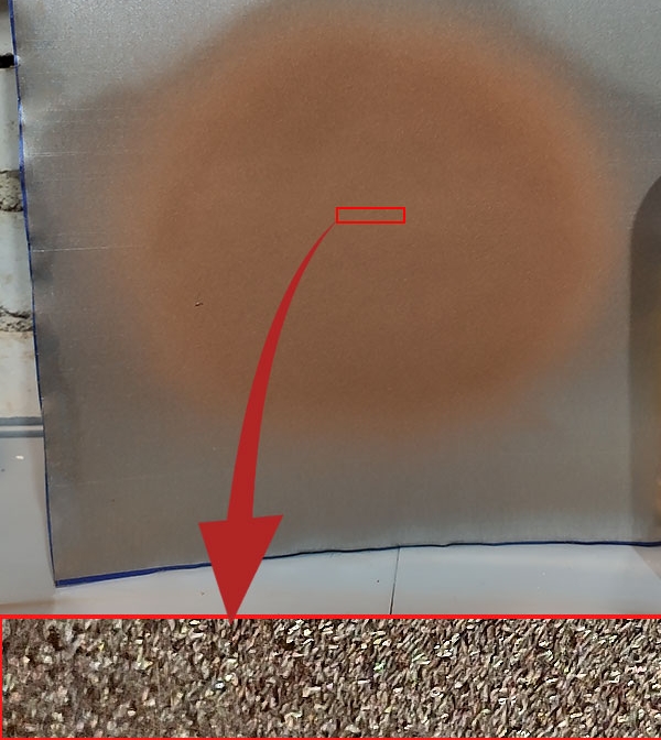 При использовании баллона первое с чем мы столкнулись это с проблемами с размешиванием состава. Звук от шарика, находящегося в аэрозольном баллоне ни как, не хотел становиться звонким. Он каждый раз в чем то вяз внутри баллона. Промчавшись с ним три минуты вместо положенной одной мы начали наносить состав на тестовую поверхность. Состав шел неравномерно, комьями. Это хорошо видно если рассмотреть напиленный состав вблизи. В конечно итоге трубка внутри аэрозольного балона забилась и состав перестал выходить.