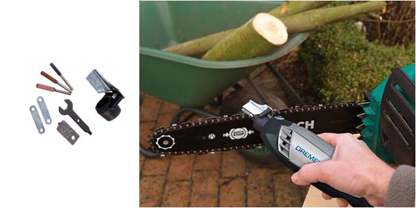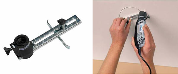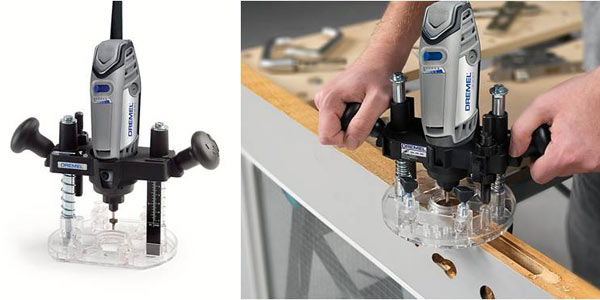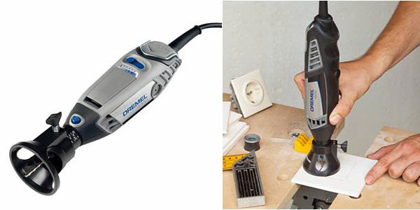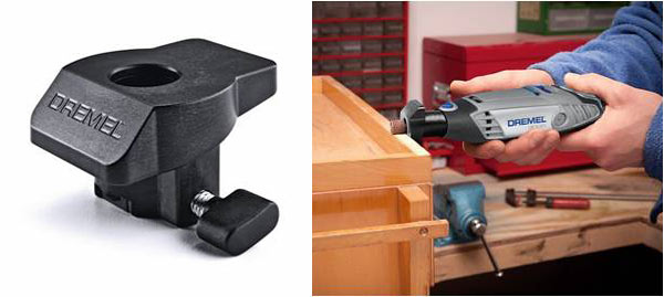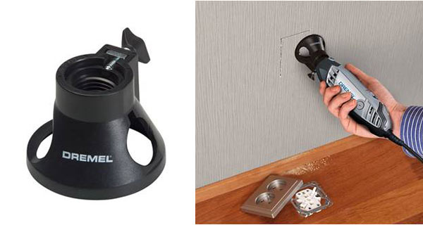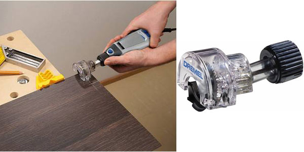 Этот комплект обеспечивает контролируемую резку самых разнообразных материалов. Несомненный плюс приставки в том, что она легко присоединяется к инструменту Dremel. С ее помощью можно легко регулировать глубину при обработке материала толщиной до 19 мм. Кроме того, насадку можно использовать для пробивания отверстий, при обработке кожи или для восстановления рельефа деталей из гипса или древесины. Приставка входит в набор 4000-6/128. Рекомендуемая стоимость отдельной приставки около 889 рублей.