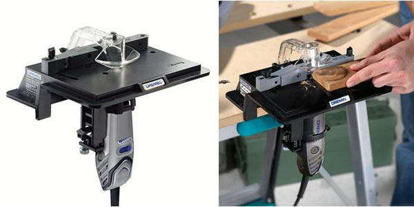 Этот столик превратит ваш Dremel в стационарный фрезерный станок высокой точности. Стол имеет гладкую поверхность, что обеспечивает легкое скольжение деталей и материала во время работы. Вы сможете точно резать, прорезать, шлифовать края, создавая нужный рисунок и форму, например, для рамок. Размеры стола 203 x 152 мм. Рекомендуемая стоимость 2 859 рублей.