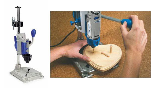 Совмещенная со штативом рабочая станция— это идеальное решение для стационарной работы с вашим Dremel. Возможность вертикального сверления или сверления под углом, регулировка шага в 15 градусов. Переместив приставку в горизонтальное положение, можно полировать и шлифовать различные материалы. Рекомендуемая стоимость 3 999 рублей.