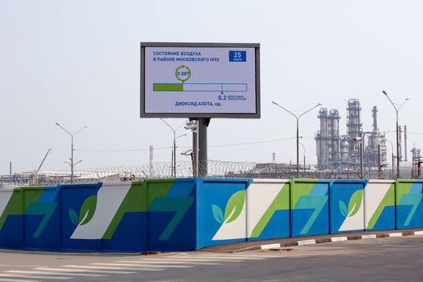 Рядом располагается экоинформер, показывающий состояние атмосферы на заводе в режиме реального времени.