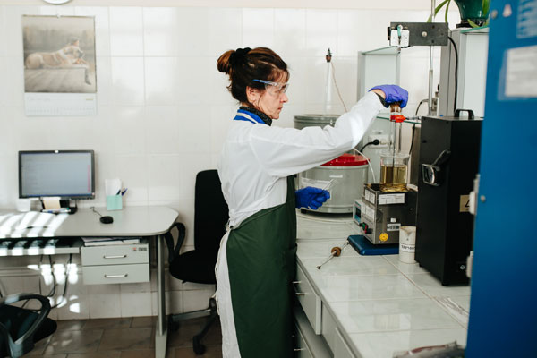 В лаборатории исследуются все(!) физико-химические параметры произведенного топлива, на каждую партию составляется паспорт, и делается арбитражная проба.