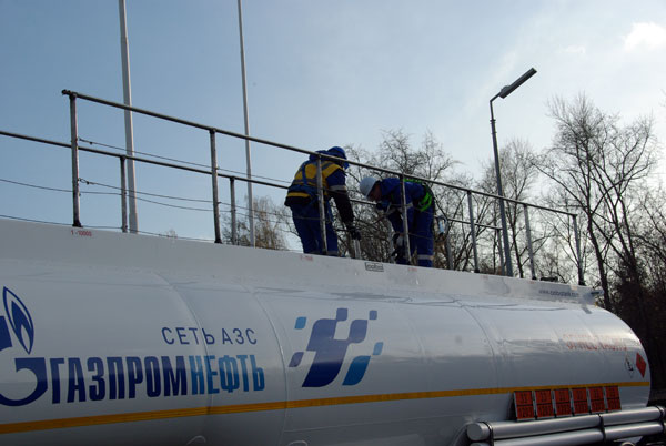 Со склада Московского НПЗ топливо развозится автомобильным транспортном по сети АЗС «Газпромнефть».