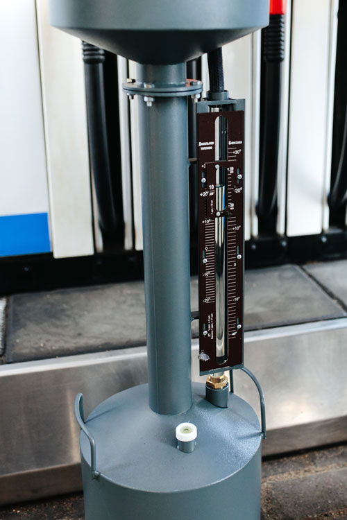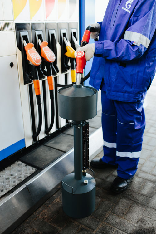При помощи такой мерной емкости производится контроль топливораздающего оборудования АЗС. Внутренние требования, предъявляемые на АЗС «Газпромнефть», – чтобы ошибка не превышала 25 мл на 10 л топлива.