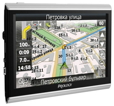 ТЕСТ-ОБЗОР МОДЕЛИ КОНСТРУКТИВНЫЕ ОСОБЕННОСТИ Навигатор Prology iMAP-70M выполнен в прямоугольном корпусе, который изготовлен из гладкого глянцевого пластика. На верхнем и нижнем торцах устройства можно заприметить серебристую окантовку, сглаживающую углы и придающую дизайну навигатора особую оригинальность. Относительно большие габариты прибора (175 х 117 х 14 мм) обусловлены использованием довольно солидного по своему размеру дисплея – 7 дюймов. Все разъемы, которыми оснащается модель навигатора Prology iMAP-70M, располагаются на правом боковом торце корпуса. Здесь можно обнаружить: слот для установки карты памяти microSD, гнездо для наушников (3,5 мм), а также разъем miniUSB для подсоединения прибора к компьютеру или другому цифровому устройству. На противоположной стороне располагается громкоговоритель мощностью 1 Вт и кнопка для перезапуска - “Reset”. Автонавигатор Prology iMAP-70M рассчитан на постоянное электропитание от бортовой сети автомобиля. Конечно, устройство имеет встроенный аккумулятор, что позволяет использовать его автономно, но длительность такой работы не велика, и лежит в пределах от 1,5 до 2-х часов. Объяснить такую характеристику можно высокой энергозатратностью платформы на которой разработан навигатор, а также достаточно большими размерами дисплея, который даже в теории экономичным быть не может. Кстати, контроль за состоянием встроенной батареи осуществляется с помощью специального индикатора заряда, который располагается на лицевой панели, с левой стороны ЖК экрана. Для установки GPS навигатора Prology iMAP-70M на лобовое стекло автомобиля предусмотрен кронштейн и держатель, которые выполнены поворотными, и могут вращаться по отношению к друг-другу в одной плоскости. Жесткость всей конструкции определяется технологичным винтом, а вернее степенью его «затянутости». Так, к примеру, при довольно сильной тряске автомобиля, этот винт можно подтянуть сильнее, и тем самым обеспечить более надежную стабилизацию всего крепления. ОСОБЕННОСТИ РАБОТЫ: навигатор Prology iMAP-70 работает под управлением операционной системы Microsoft Windows CE 6. Благодаря чему, на устройство можно инициализировать сторонний софт и дополнительные программы. Для сохранения личных файлов и документов в навигаторе предусмотрено 2 Гб свободного пространства (кстати, примерно столько же занимает и программное обеспечение навигации). Музыка и видео воспроизводятся во всех, наиболее часто используемых форматах. Так, к примеру, поддерживаемые видеоформаты: MPEG4, AVI, WMV, поддерживаемое аудио: MP3, WAV, WMA. Кроме всего прочего, данный навигатор можно с успехом использовать для просмотра фотоснимков в высоком разрешении, а также для чтения текстовых файлов. Что касается дисплея навигатора, то при довольно сильных солнечных лучах он ведет себя вполне достойно. В автомобиле, а в частности на экране устройства, все объекты неплохо различаются, при этом в режиме «навигация» все иконки, здания, и другие элементы отрисовываются четко и детализировано. НАВИГАЦИЯ: по умолчанию рассматриваемое нами устройство оснащается навигационным пакетом «Навител – Навигатор 5.0» с детальными картами местности России. Данное приложение поддерживает традиционный перечень функций, которые предлагаются для подобного рода устройств. В том числе, здесь можно найти и поддержку отрисовки объектов в «3D», а такж