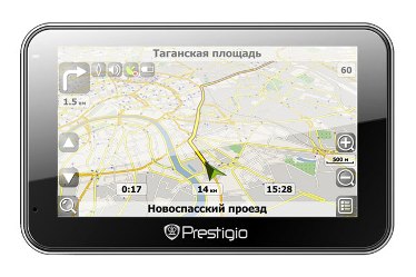 ТЕСТ-ОБЗОР МОДЕЛИ КОНСТРУКТИВНЫЕ ОСОБЕННОСТИ Как и большинство HD моделей, автонавигатор Prestigio GeoVision 5700BTFMHD выполняется в прямоугольном корпусе с аккуратно сглаженными углами. Обе стенки корпуса изготовлены из закаленного стекла: передняя – прозрачная с интегрированным дисплеем и антибликовым покрытием, а задняя – черная, с глянцевой поверхностью. По периметру навигатора проходит алюминиевая окантовка, которая подчеркивает высокотехнологичность, а также улучшает общее восприятие устройства. Размеры прибора составляют 135 х 86 мм, при толщине 10,5 мм. На правом боковом торце автонавигатора Prestigio GeoVision 5700BTFMHD располагаются: клавиша перезапуска («Reset»), гнездо для подключения наушников (2,5 мм), а также слот для установки карты памяти microSD. На противоположной, левой стороне, нашел свое место громкоговоритель мощностью 1 Вт. Одним словом, расположение всех основных элементов интерфейса довольно продуманное. Единственное, на что можно пожаловаться так это на местоположение разъема miniUSB, который находится на нижнем торце, что довольно неудобно при ежедневной эксплуатации устройства. Следует также отметить и датчик освещенности, который находится на лицевой панели навигатора в виде небольшого прямоугольника. С помощью этого датчика, обеспечивается автоматическая регулировка яркости дисплея Prestigio GeoVision 5700BTFMHD, которая добавляется или приглушается в зависимости от степени внешней освещенности. Установка навигатора осуществляется посредством универсальной крепежной конструкции - Prestigio Smart Mount, которая позволяет монтировать устройство не только на лобовое стекло, но и на панель приборов автомобиля. Подобный крепеж состоит из цилиндрического блока, раскладывающегося на несколько небольших вращающихся дисков. К одному из этих дисков, при помощи клейкой накладки, и закрепляется навигатор. Сам кронштейн удерживается на лобовом стекле за счет вакуумной присоски, а на панели приборов благодаря клейкой ленте. Такой крепежный механизм позволяет не только поворачивать навигатор в любых направлениях, но и изменять его угол наклона, а также регулировать высоту, на которой он расположен. ОСОБЕННОСТИ РАБОТЫ: автомобильный навигатор Prestigio GeoVision 5700BTFMHD работает под управлением ОС Windows Embedded CE 6.0, что позволяет установить на устройство дополнительные приложения и навигационные пакеты. При этом по поводу свободного пространства пользователь может не волноваться, поскольку навигатор оснащается внутренней памятью объемом 4 Гб, чего достаточно, к примеру, для установки сразу двух довольно «тяжелых» навигационных софтов. Ко всему прочему, рассматриваемый нами аппарат компании Prestigio поддерживает функцию Bluetooth, с помощью которой можно разговаривать непосредственно через навигатор, без применения телефона. Все входящие и исходящие вызовы, а также принятые и отправленные SMS сообщения сохраняются автоматически. Следует также отметить, что работа в этом режиме осуществляется с помощью сенсорного экрана, что позволяет без особого труда набирать номера телефонов или же тексты SMS. Кстати, опция Bluetooth может использоваться не только для общения, но и как инструмент для выхода в Интернет (через телефон). Поскольку модель Prestigio 5700BTFMHD оснащается поддержкой протокола DUN, то включив режим Интернет, можно без как-либо проблем просматривать веб-сайты и работать с