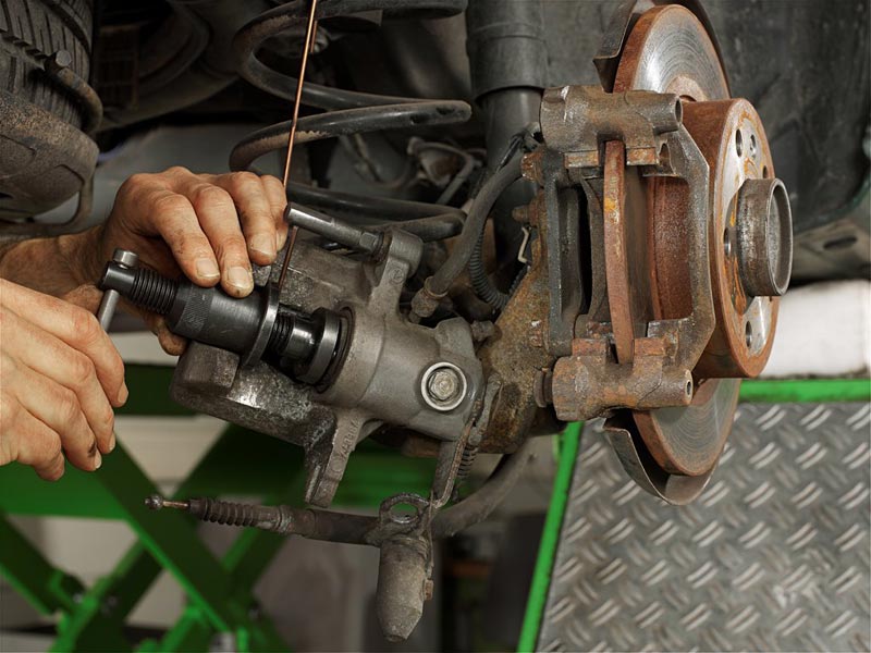 2) На дисковых механизмах проверить износ фрикционных накладок тормозных колодок, подвижность суппортов и поршней. При затрудненном ходе отдельных компонентов провести их демонтаж и очистку, восстановить подвижность. По степени износа и общему состоянию решить, нужны ли новые детали.