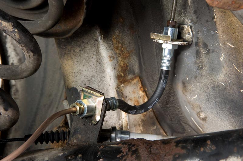 4) Проверка тормозных шлангов на образование трещин и герметичность. Обратить внимание на состояние тормозных трубок и фиксаторов шлангов. При необходимости, поврежденные элементы необходимо заменить.