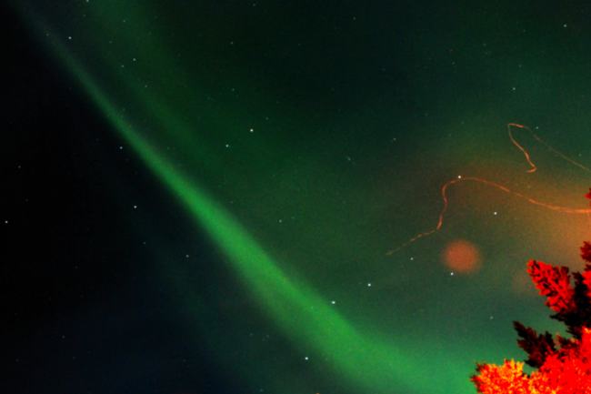 От «пионерского» костра не отставала и природа: специально на завершение «Арктик Трофи 2011» Небесная канцелярия организовала красивейшее шоу с Северным сиянием в главной роли. Совсем не в сезон для этого чуда природы разыгрывалось световое представление во все небо, отдавая честь героизму ребят, преодолевших все препятствия 17-й легендарной арктической экспедиции «Арктик Трофи».